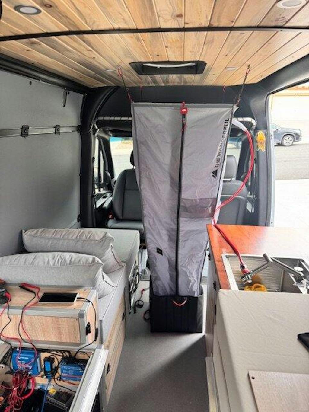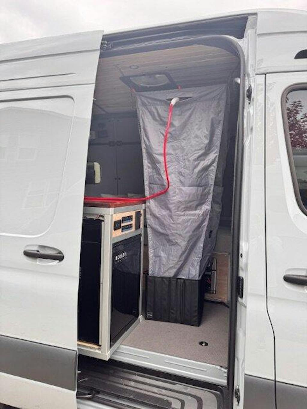 Easily hook up the shower inside or outside of your van—versatile options for wherever your adventures take you!
