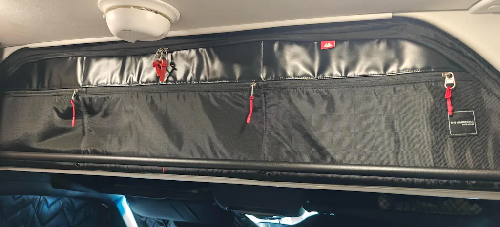 The Hideaway Headliner Cover not only keeps your van looking stylish and organized, it also keeps your belongings secure while driving. No more items flying off the shelf on those bumpy drives.