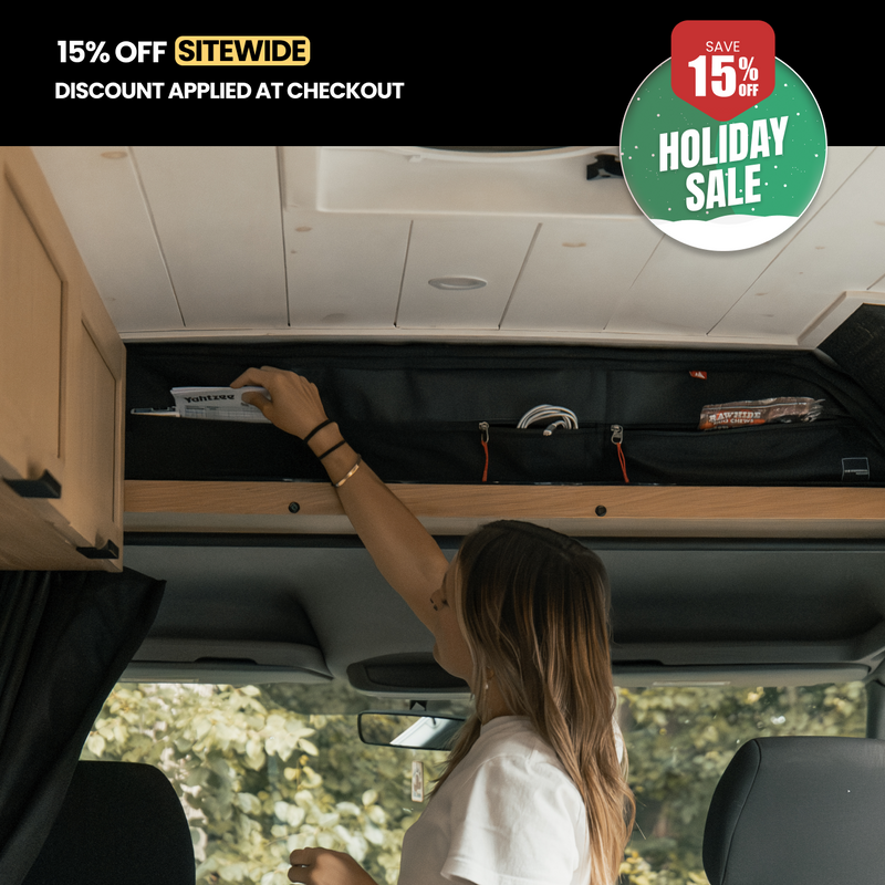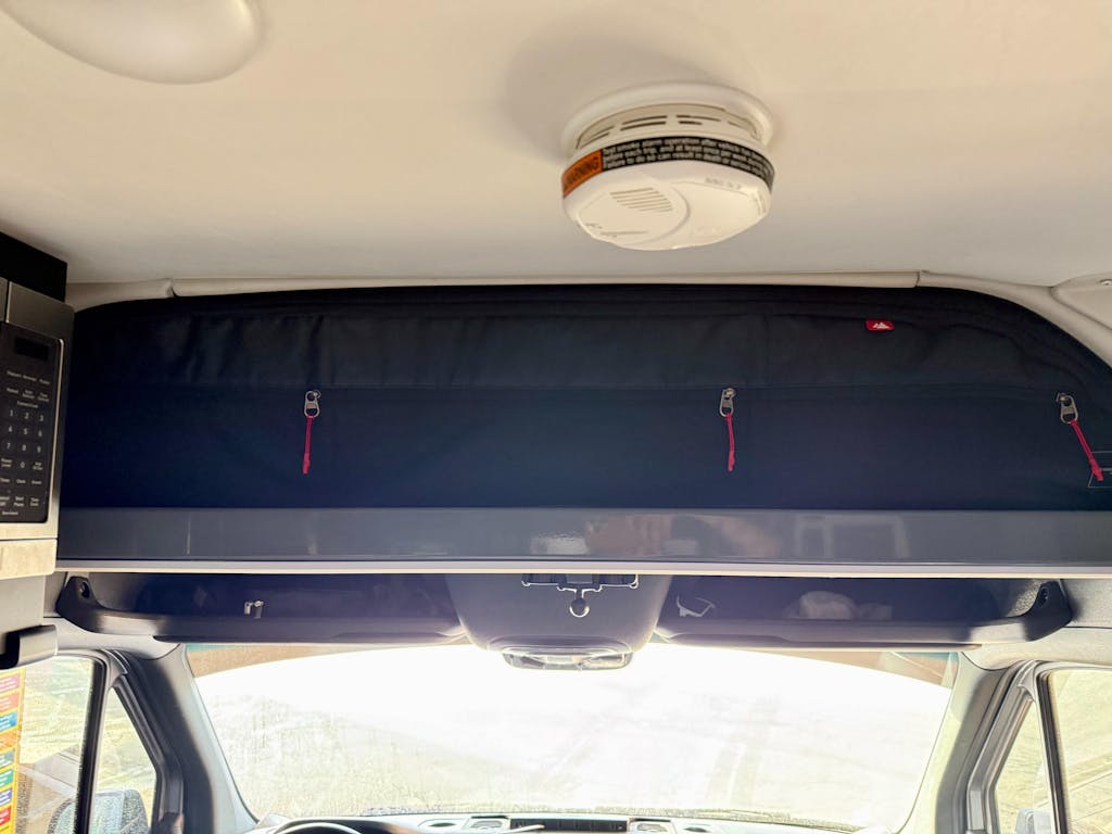 The Hideaway Headliner Cover not only keeps your van looking stylish and organized, it also keeps your belongings secure while driving. No more items flying off the shelf on those bumpy drives.