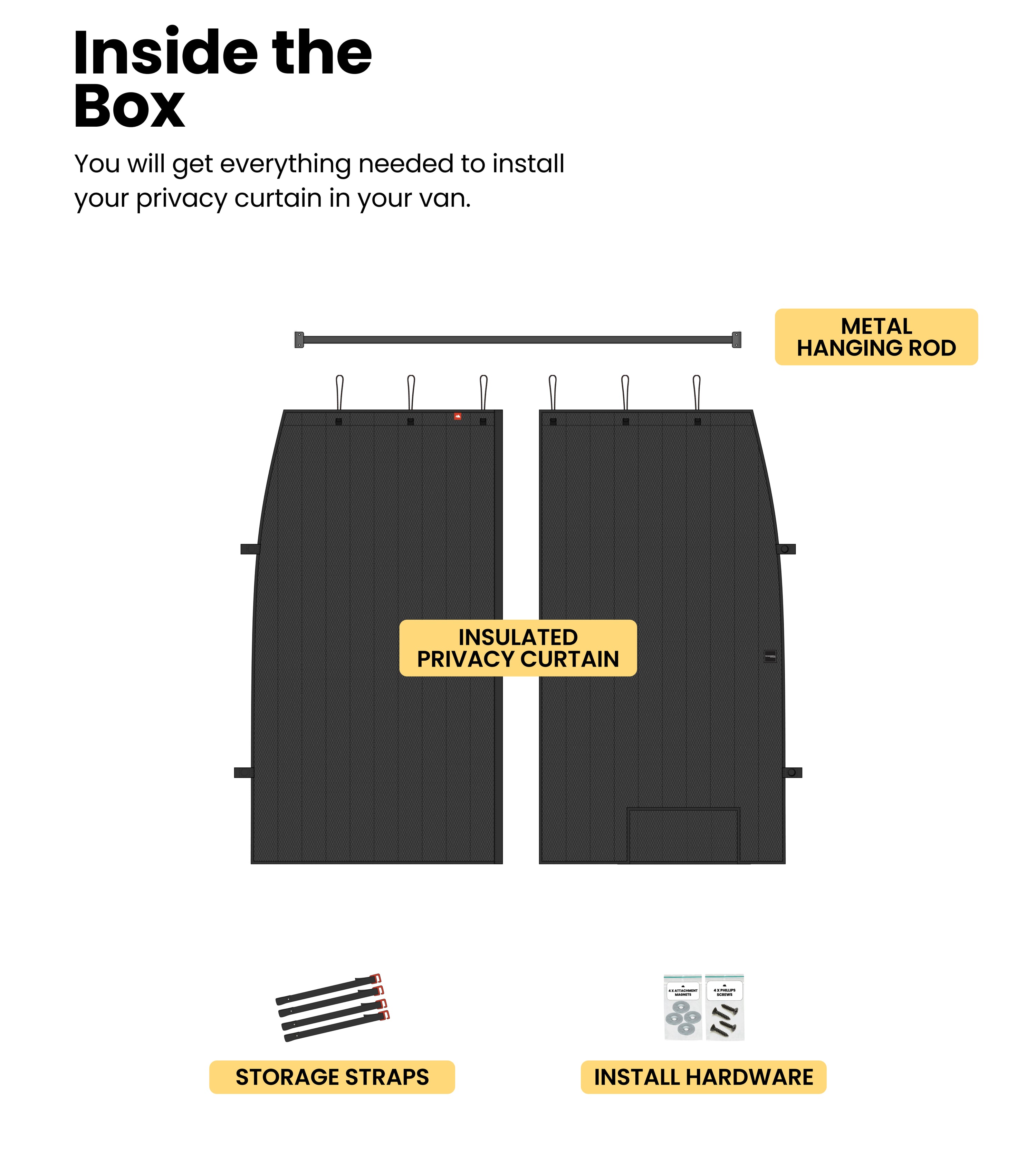 The StealthShade Privacy Curtain offers exceptional insulation and complete privacy, custom-designed for Sprinter vans. With quick and easy installation, durable materials, and a sleek design, it’s the perfect solution to keep your van cozy and secure on any adventure.